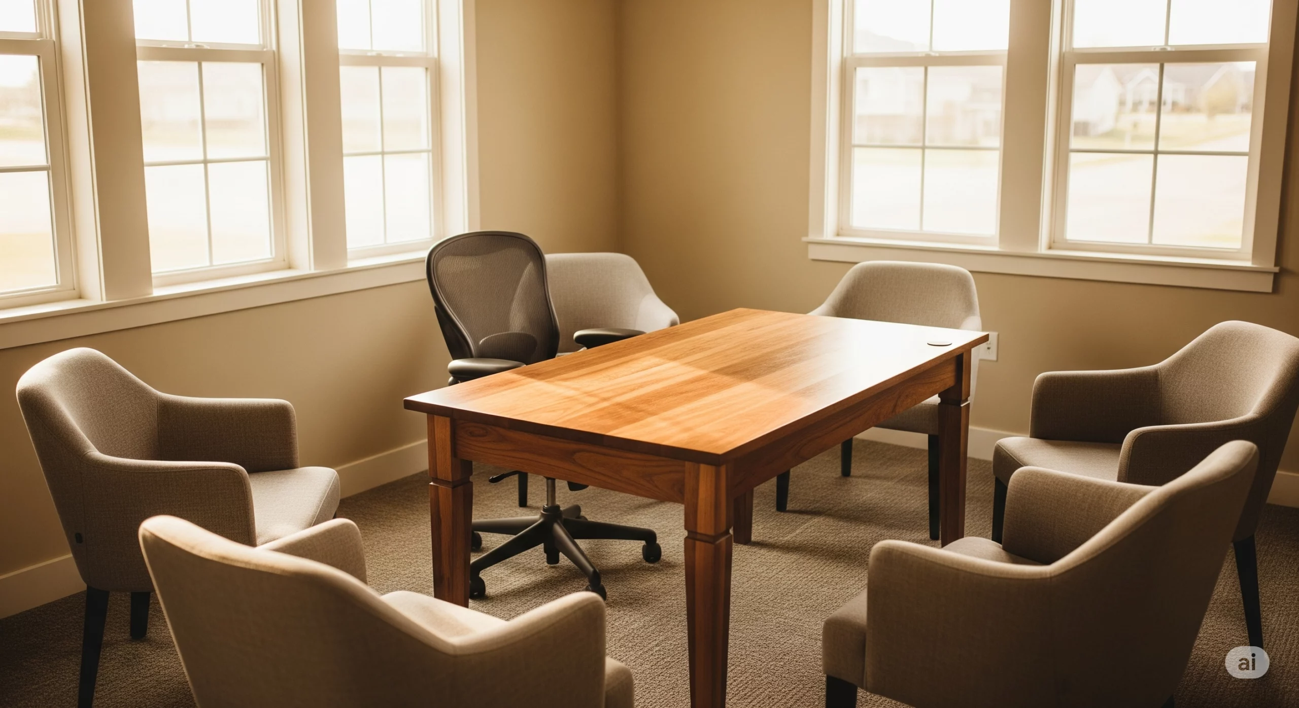 Aménagement : mobilier adapté aux échanges et à la collaboration (tables, chaises confortables).
